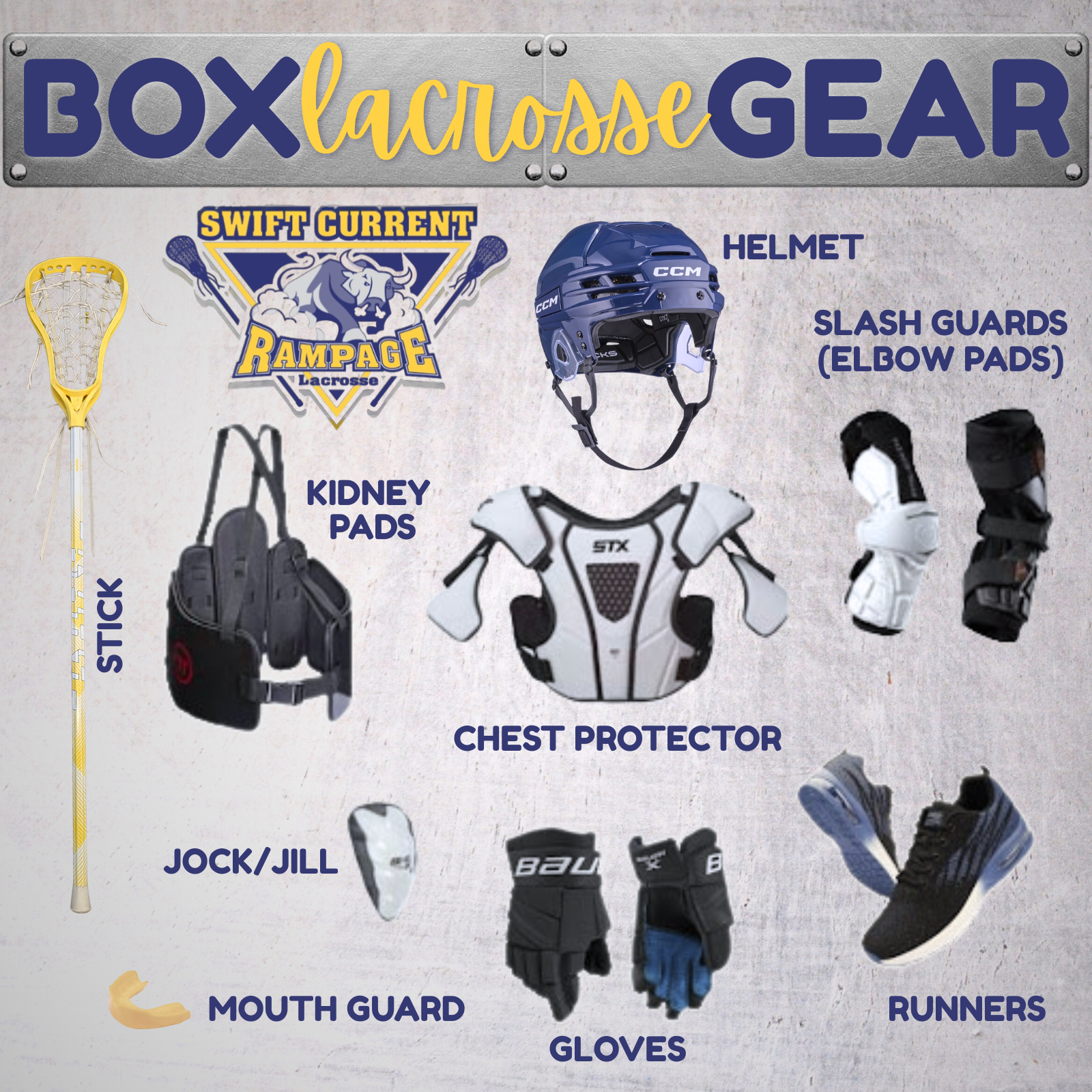 *Same equipment used for hockey. Goalie Equipment (not including helmet, hockey pants and mouthguard) will be provided by the league.